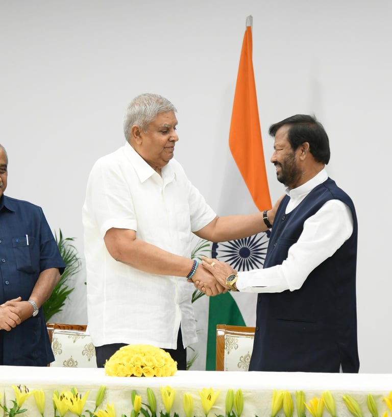 Namma D S V in honored by Sri Jagdeep Dhankar at his book release function in V P Enclave , Delhi